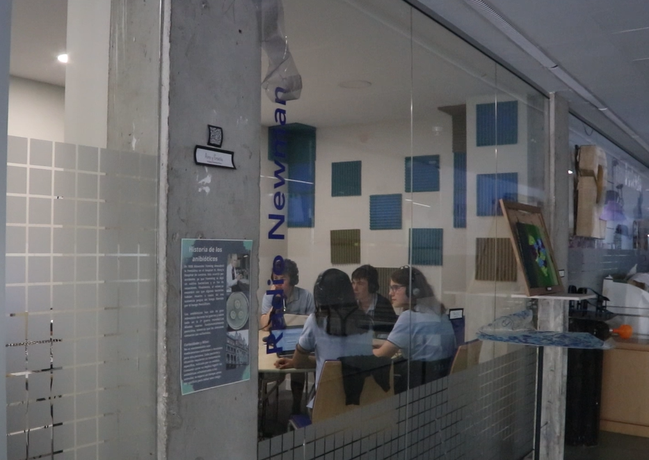 Estudiantes del Colegio Newman grabando un podcast como parte de las actividades complementarias y extraescolares del centro.